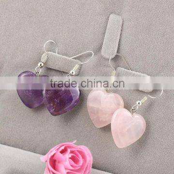 Women wear jewelry purple pink heart shaped stone pendant earrings