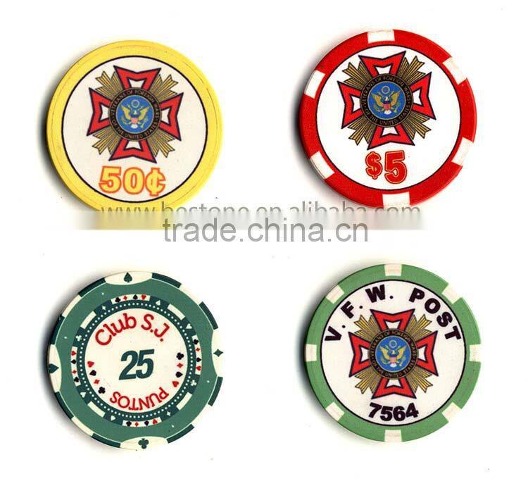 4) The image on ceramic poker chips is printed from edge to edge. The entire face and the edge are fully customizable, using any and all colors.
