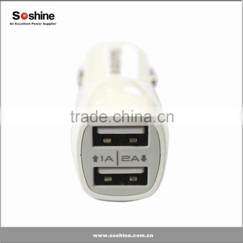 Soshine 2Amps / 10W promotional dual USB Car charger Designed for Apple and Android Devices