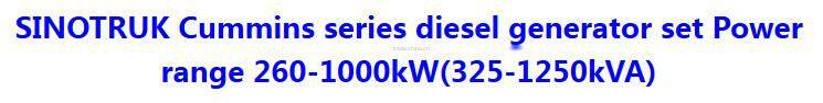 SINOTRUK Series Diesel Generator Set Power Range 260-1000kW(325-1250kVA)