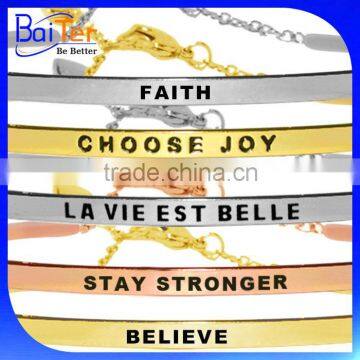 Custom Cheap Stainless Steel Hand Stamped Letter Cuff Bracelet With An Black Uplifting Message