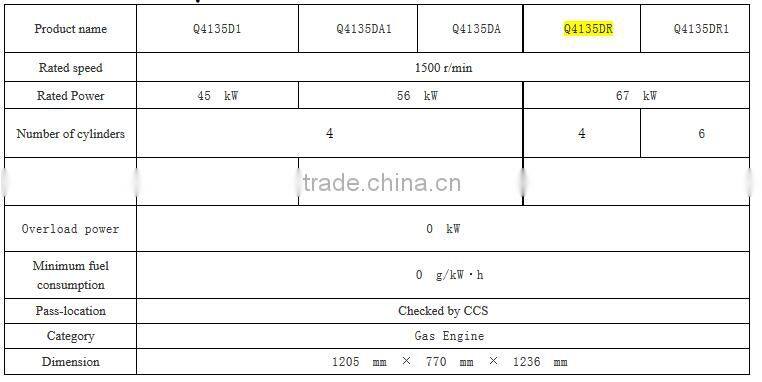 Nantong 67 kW 4 Cylinders Gas Engine Checked by CCS for Sale