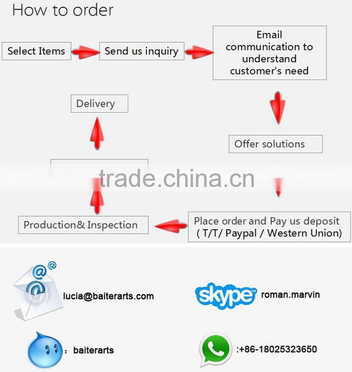 | Sample Fee | According to our designs' mold difficulty , When ordered, the fee will be returned. |
