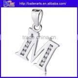 925 Sterling Silver Paved Diamond m Alphabet Pendant Design Letter m Pendant