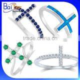 Fashion Women's Elegant Opal Cross Ring/AAA Ziron 925 Sterling Silver CZ Sideways Cross Rings
