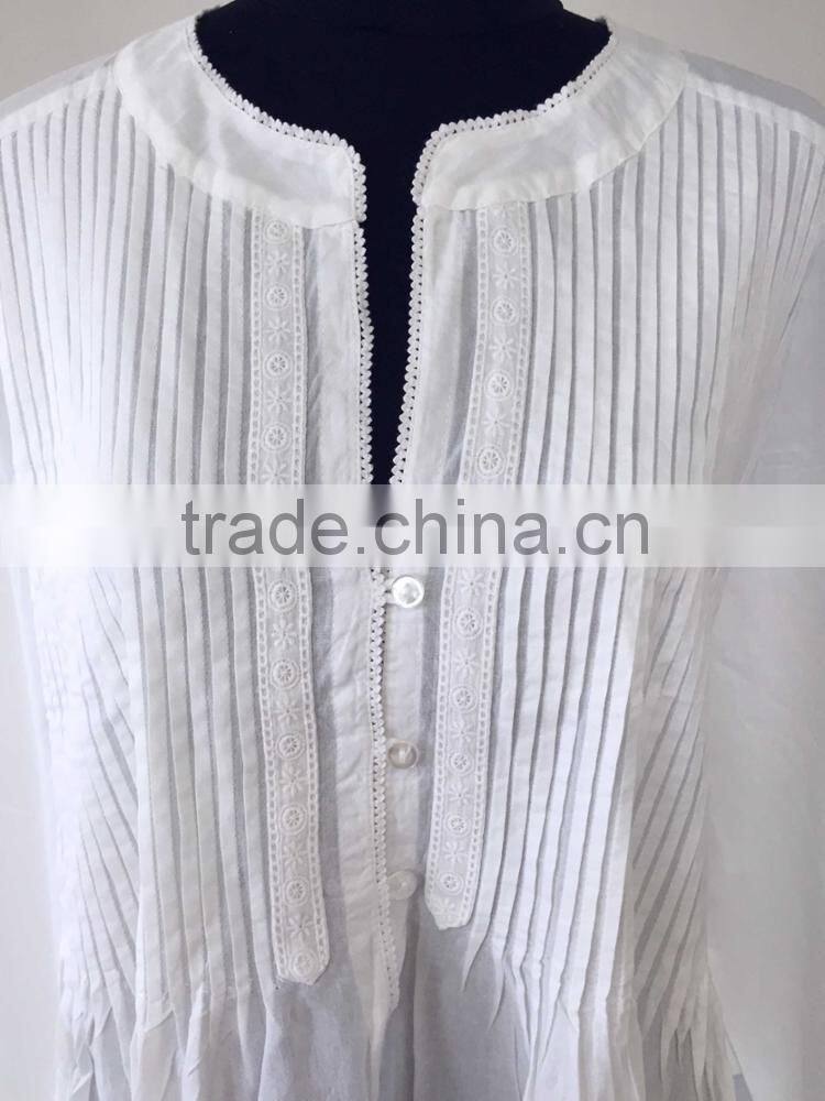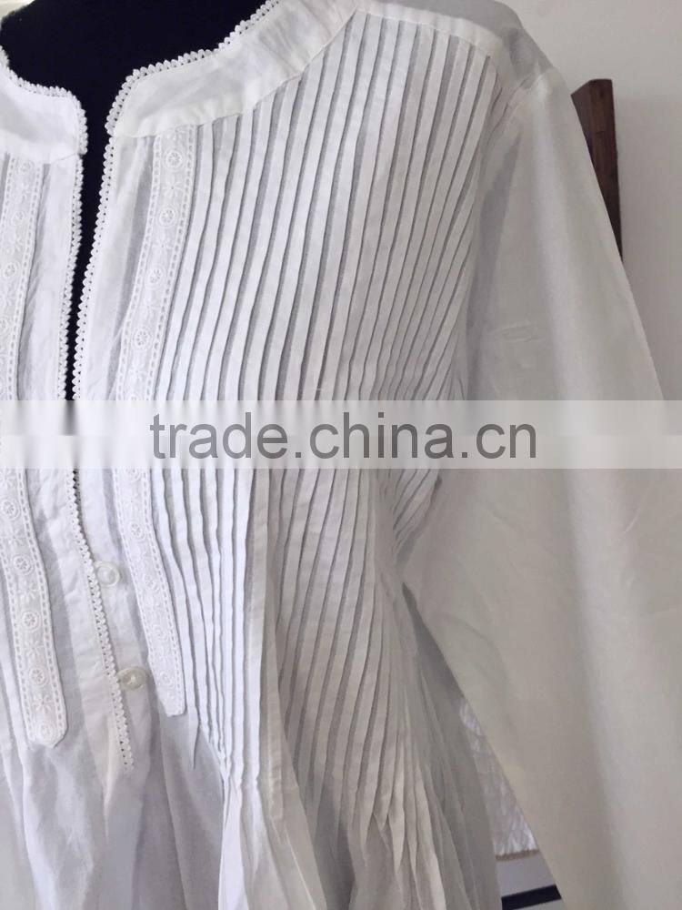 a) Heavy embroidery at yoke and hem b) Cotton lace around neckline and armhole |