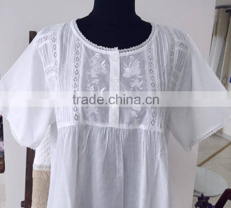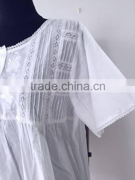 High Capability Embroidered White Cotton Nightdress/Dressing Gown