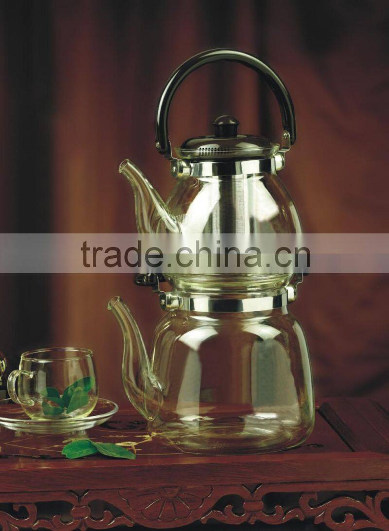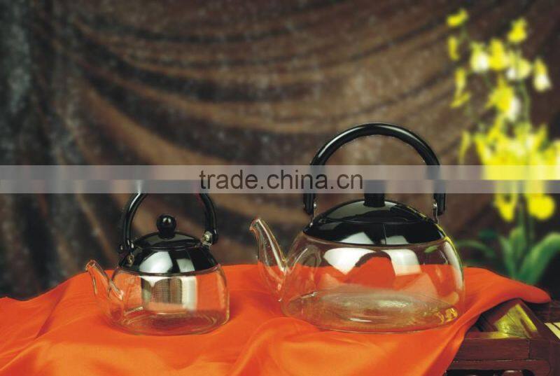 Heating Direct Glass Teapot Sets With Ss Strainer