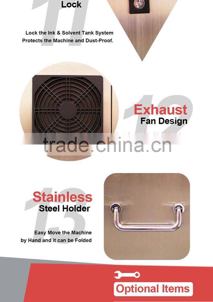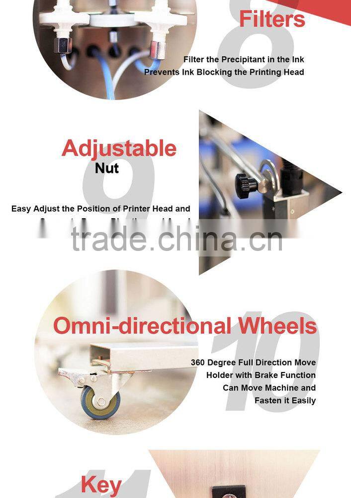 5 .Perfect humanity design, English-Chinese mutual, phonetic and region-position input, ability to download BMP from computer, one button touch stop/ start function, diagnose any fault automatics, phase and viscosity controlled automatically, nozzles auto wash.