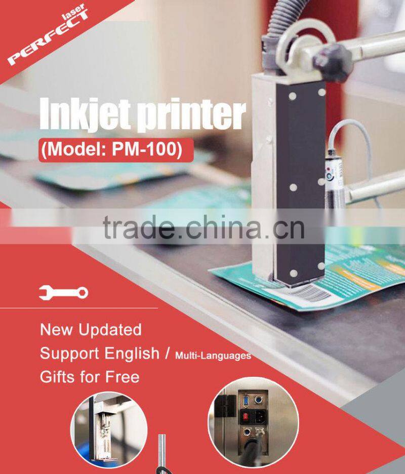 Perfect Laser Hot sell PM-100 black inkjet printer 1-4 lines expiry date/number/small character for cable/bottle/cans/packages