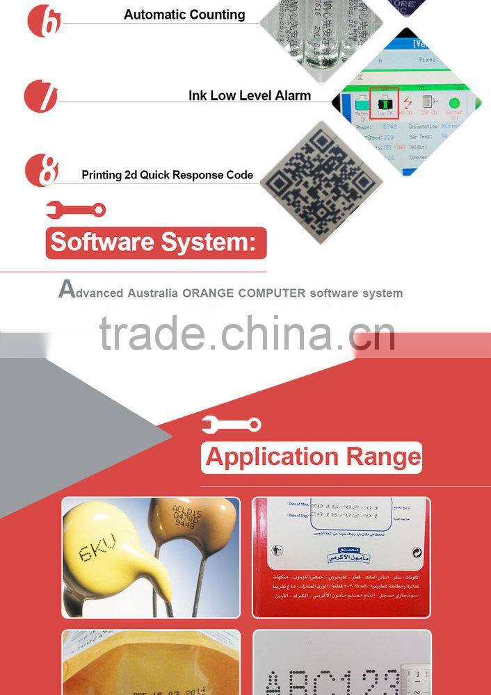 1 .Compared with other marking ways, Perfect Laser inkjet printer has its own advantages, the mark is clean, hard to erase, suitable for rapid production, applied widely, and economic. It is a promotion and progress to production and distribution management to choose ink-jet printing technique as a marking mode.