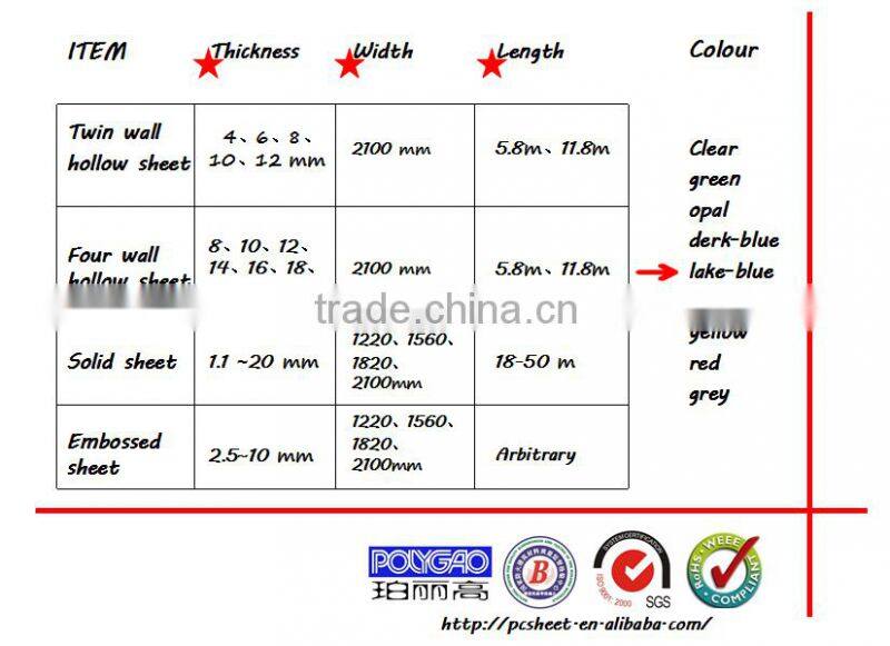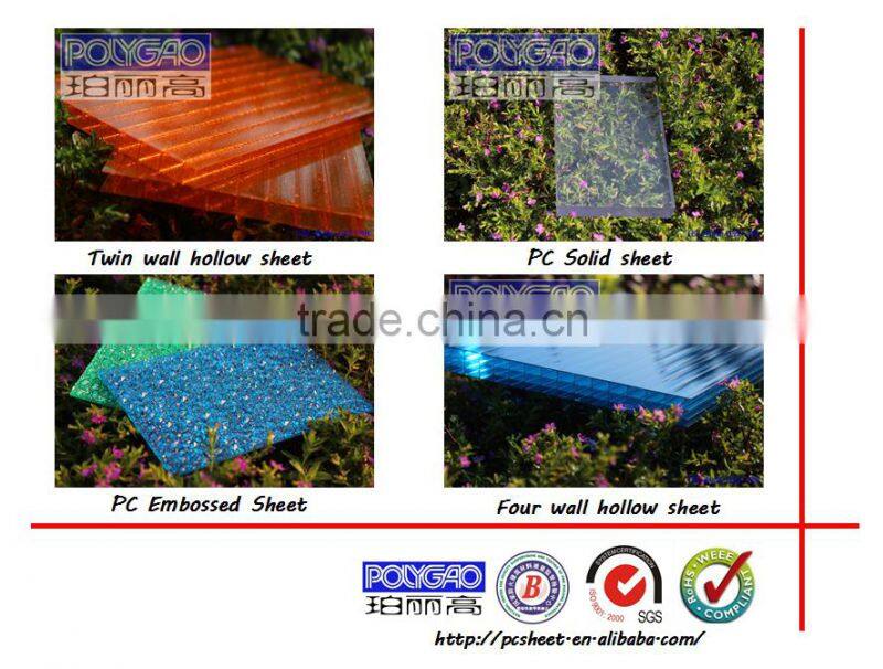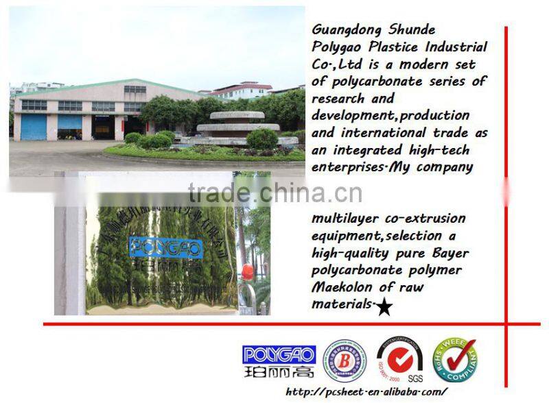 polygao series plates are imported from Bayer Markrolin polycarbonate polymer raw material productior Single 50 ultraviolet resistant,anti-aging,anti yellowing,all provide ten years warranty