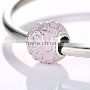 European Charm Bracelets Pink Rose Charm 925 Silver Jewelry