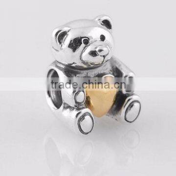 Teddy Bear With Golden Heart 925 Sterling Silver Screw Charm Bead DIY Making