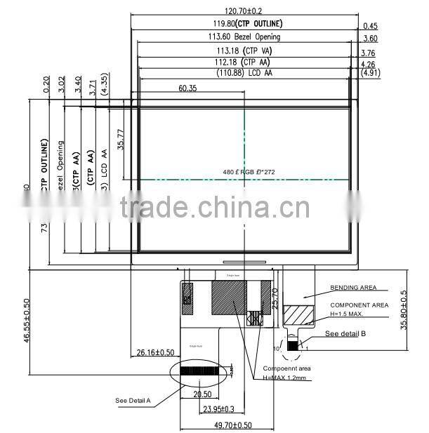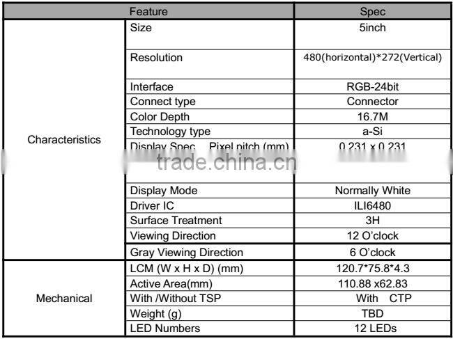 Drawing for Automative 5.0 inch P-Cap touch panel 480*272 TFT Type LCD Screen display for POS Machine