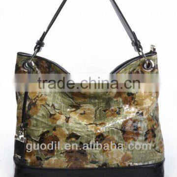 Fashion Design Flower Printed Leather Handbag for Woman Bags 2013 Brand Leather Handbag