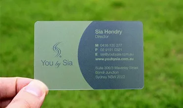 Transparent name card is very popular among businessmen, for its fashion design and light portability. It can be one side printing or two sides printing. Standard size is 85x54mm. OEM size and logo are also welcomed.