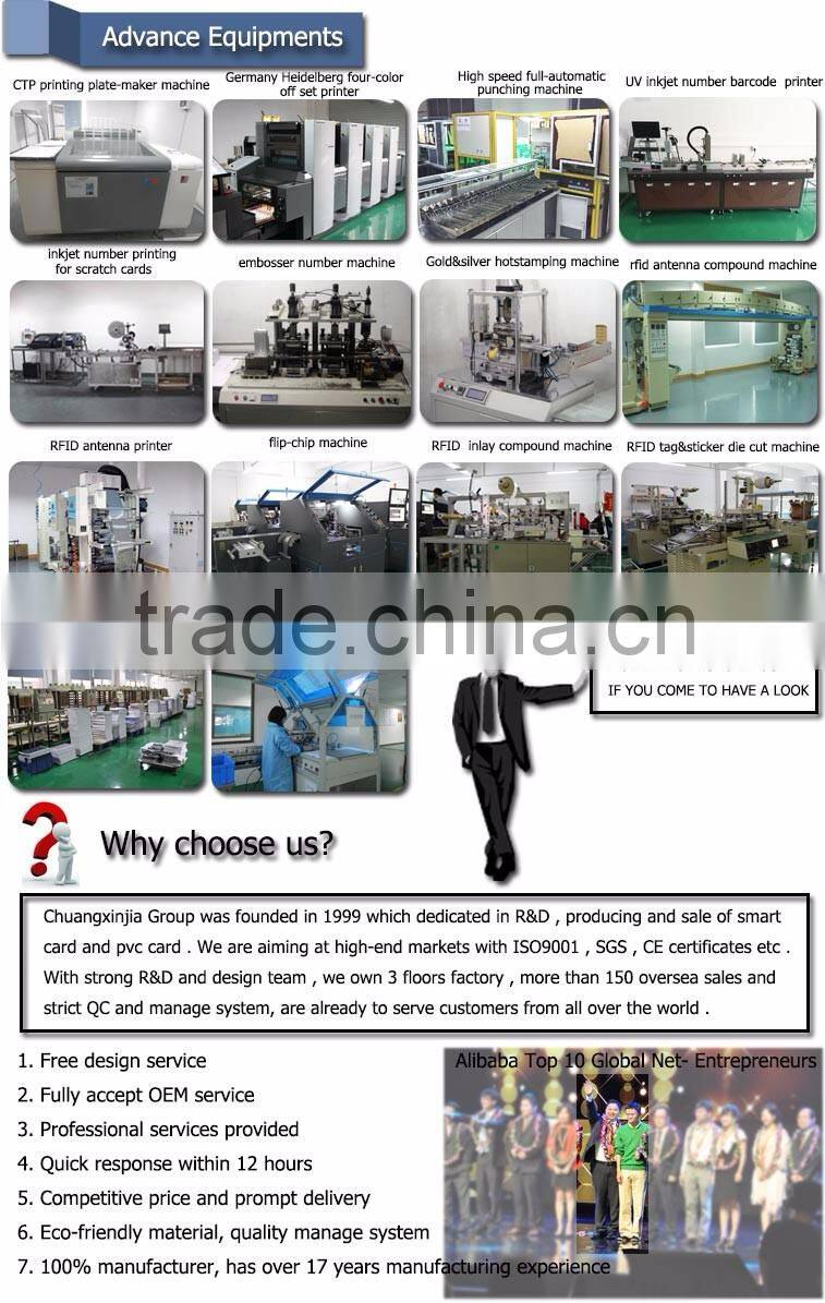 A: - We deal in plastic card since 1999, with professional experience and will give you professional suggestions to make your card perfect.