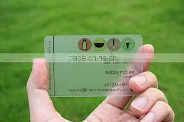 pvc transparent material,standard size 85.5*54*0.76mm,full color printing on both sides according to client's design shown.