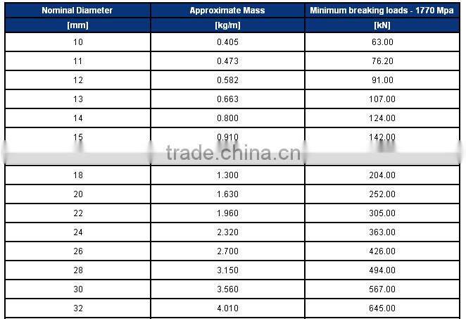 1. Tensile strength:1570,1670,1770,1870,1960MPa