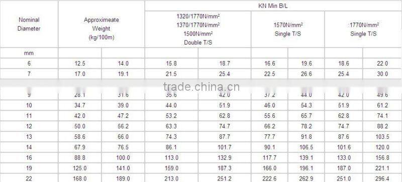 | 7 | Tensile strength | 1570,1670,1770,1870,1960MPa |