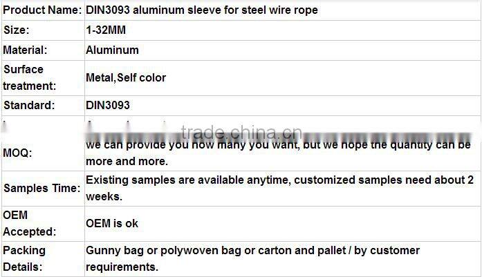 DIN3093 Aluminum Sleeve for Steel Wire Rope