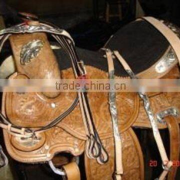 Western Saddle WS023 are made from Premium Cow Leather with a Suede Leather Equitation Style SeatHorse Tack Mania Offer - Western Saddle WS023 About Horse Tack Mania A warm welcome from HORSE TACK MANIA. It is the house of Quality products in leather saddlery, harnesses and all equestrian equipments. We wish to introduce ourselves as a reliable manufacturer and exporter of all type of leather equestrian equipments. Horse Tack Mania also manufacture a complete range of horse rugs and leather saddlery for last one decade. We are exporting to number of leading and well-established customers all over the Globe. It will not be out of place to mention here that we not only have the capacity but are always willing to adopt new technology for improvement of the products we manufacture. Horse Tack Mania also deals into: # Accessories # Bridle # Browbands # English Saddle # Leather Halter # Leather Wallets # Rugs # Saddle Pad # Stock Saddle # Western Saddle # Treeless Saddle