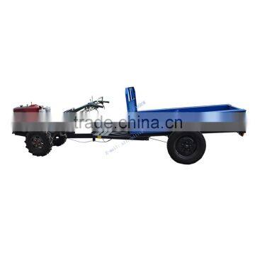 The model AL7C-1 hand trailer fitted with an 8-15hp walking tractor is used as a short distance transportation vehicle for farmers.This trailer is characterized by it’s simple structure,easy control and convenient use and is quite suitable for travelling on pavements of various grades in the plain,hilly and mountain areas as well as on countryside roads.