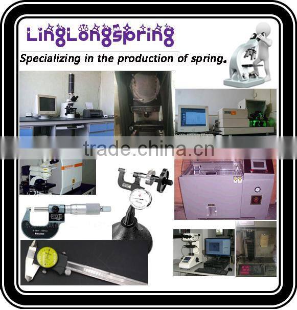 We have a series of inspection equipment, raw materials, we like analysis of material composition, because we want to be responsible for the customer, we have the spectrum instrument, we pay attention to the composition of the material. Every time are measured over 6 times before the report. For the hardness of the material, we have a hardness tester,This is one of the reasons affect the quality of springs. Our factory will be used in the production of fine spring electron microscope, because our eyes can not see the shape of a spring, the spring is more productive as art, the pursuit of perfection. In the performance of the above spring, we haveTension compression force measuring machine, fatigue testing machine, 1000000 times the rate is not a problem, after surface treatment, if the customer wants us to do the salt spray test, salt spray test machine, we have. We are very strict quality requirements, but the price is very low, not letter, send a drawings for quotation.