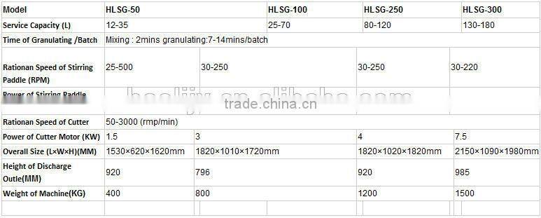 Time of Granulating /Batch | Mixing : 2mins granulating:7-14mins/batch | |