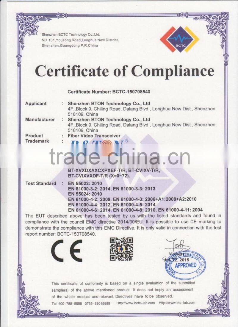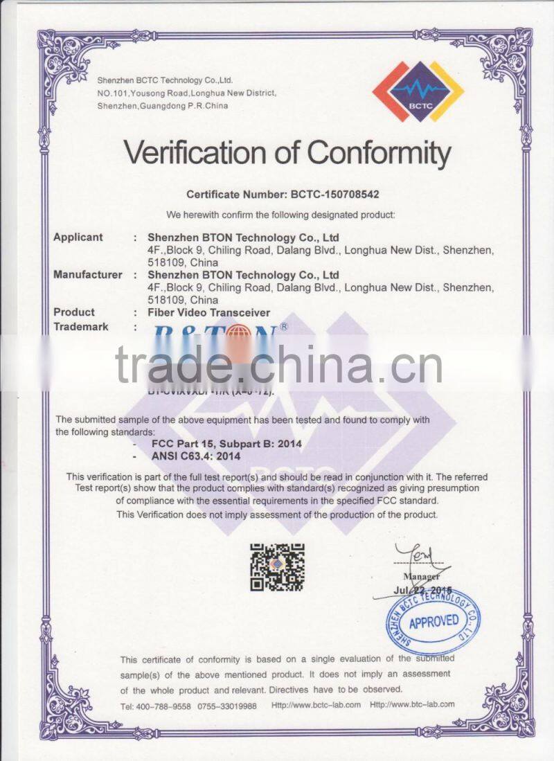 Shenzhen BTON Weiye Technology Co., Ltd is one of the powerful and high-tech companies specialized in researching, manufacturing and marketing of optical and fiber communication technologies. Our major products are media converter, digital video optical transmission systems and Optical Transceiver Modules .All of these products are widely applied in many industries like telecom ,traffic, government organization, campus network ,oil industry, electric power system, and public security etc. B&TON is one of the biggest and fastest growing multi products manufacturing and service provider(including OEM,ODM service and customized) in Shenzhen China.