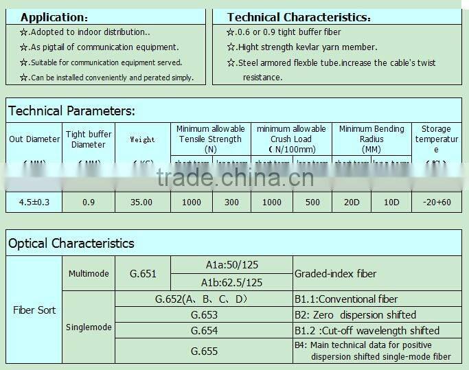 4 core Multimode/SM Distribution Anti-rodent Armored Indoor Fiber Optic Cable