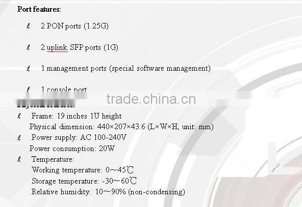 1U 19 inch 2 PON 1U rack SNMP,FTTH GPON/GEPON FTTB/FTTH OLT System with 1:64 Splitting Ratio Supported 128 ONUs Fully Compatible