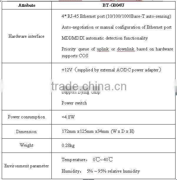 BT-G004U is the integration of powerful interoperability and key customers’ specific needs and low costs. It provides FTTH(Fiber-to-the-Home),FTTP(Fiber-to-the-Premises)users with triple play services.