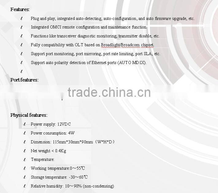 <![if !supportLists]>l <![endif]>1 GPON port (uplink 1.25Gbps, downlink 2.5Gbps)