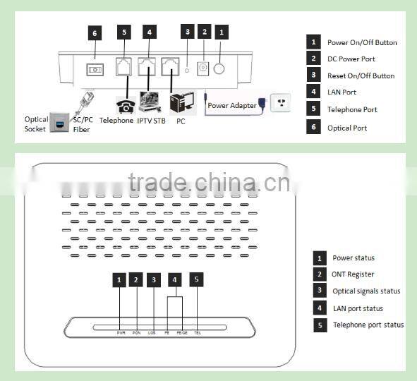 612H GPON HGU ONT is one of the GPON optical network unit design to meet the requirement of the broadband access network. It apply in FTTH/FTTO to provide the data, voice and video service based on the GPON network.