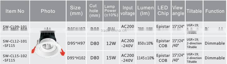 15w COB Dimmable Led Module Downlight ,led Downlight, Led Cob Downlight