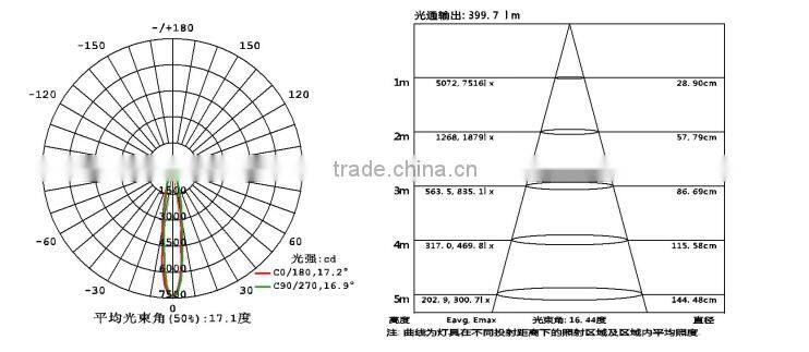 Note: The above light spot is based on this product: 9W module downlight, 3000K, 15°