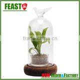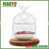 High Borocilicate Clear Glass Bell Jar Wooden Base Decorative Glass Jar