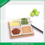 White Porcelain Snack Dishes With Bamboo Tray, Tapas Dish Set