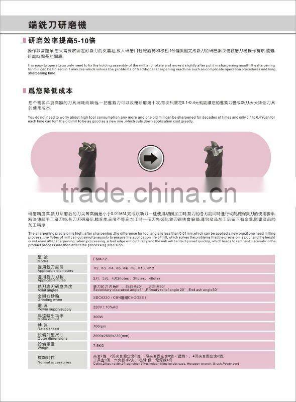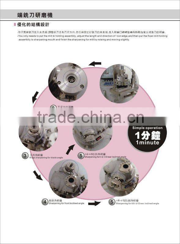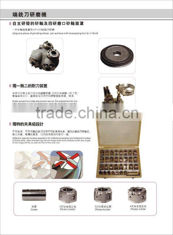 1.Help achieving sharpening of 2flutes, 3 flutes and 4 flutesφ2~φ12 mill, without changing grinding wheel.