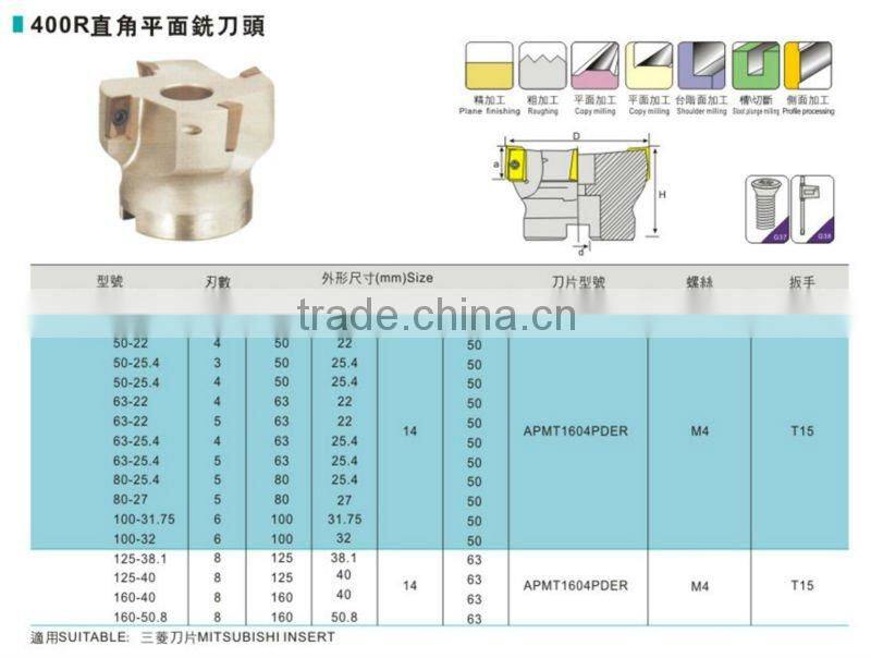 The majority of facemilling is done best with 45' approach face cutters. This allows a softer cut leading into the job, lower horsepower, reduced chatter & vibration and longer tool life.