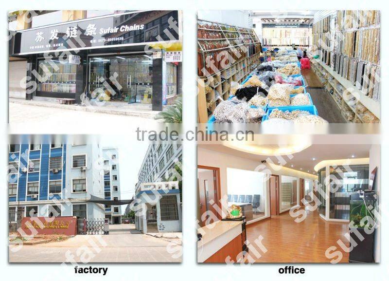 SUFAIR ACCESSORIES LIMITED, established since 1998, one of the biggest suppliers of chains in China, a professional manufacturer and Exporter of Chains and Accessories. Our chains and accessories are widely used in Fashion Jewelry, handbag, shoes, Germany and other decorations, SUFAIR has 2 factories for producing chains, one oxidized factory and one plating factory, which are all belongs to ourselves.