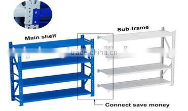 Shlef/rack including main shelf and sub-frame. Main shelf have two columes, sub-frame have one columes as picture. One main shelf could connect with many sub-frame.That could save customer cost.