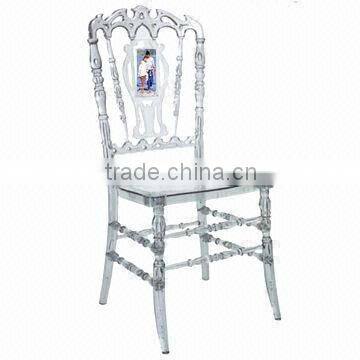 The clear/acrylic resin royal chair is widely used in wedding,party,banquet,hotel,restaurant,ballroom,church,ceremony and other special events.