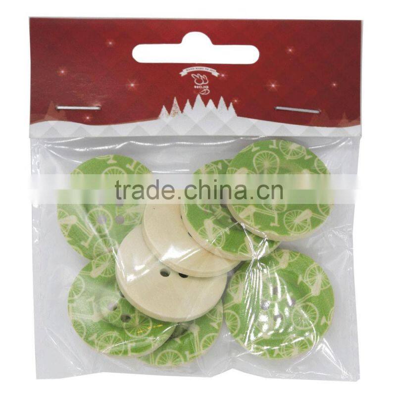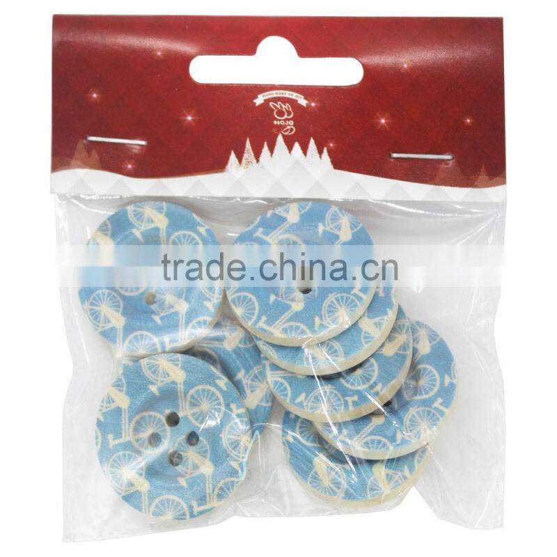 Fashion Bicycle Printed Blue Wooden Buttons 4 Holes 3cm for Fabric