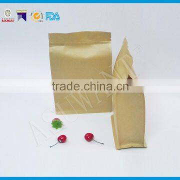 Kraft pouch flat bottom plastic stand up bag with clear window