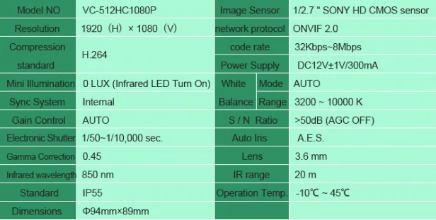 Coms Sensor 3.6mm Lens Sony ip Camera
