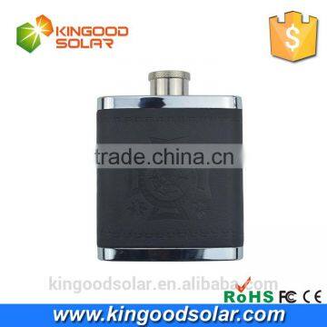 Sale promotion gift 18650 battery led indicat and faux leather unique hip flask power bank 10800mah