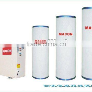 Heat pump, electric auxiliary heat and solar integrated together (optional). When sunny, heat pump does not work, otherwise, pump start-up. Super energy-saving and supply hot water in any weather.